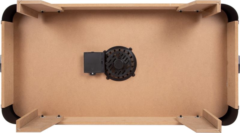 Silna dmuchawa o mocy 12 V tłoczy powietrze przez małe otworki, pozwalając krążkowi do hokeja powietrznego na płynny ruch po tafli stołu. Obydwa popychacze mają filcowe spody, co zapobiega zarysowaniu boiska.