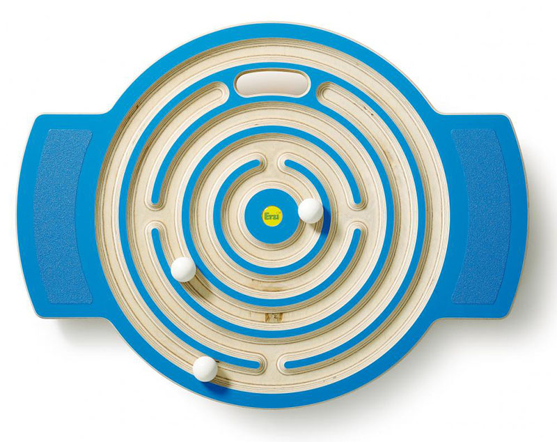 Platforma do balansowania dla dzieci Trackboard Labyrinth niemieckiej marki Erzi to sposób na świetną zabawę w ruchu. Wykonany ze sklejki brzozowej dysk posiada antypoślizgowe podstawy pod stopy, na których należy stanąć i balansując ciałem poprowadzić kulki przez labirynt. W zestawie znajduje się platforma oraz woreczek z 3 kulkami.