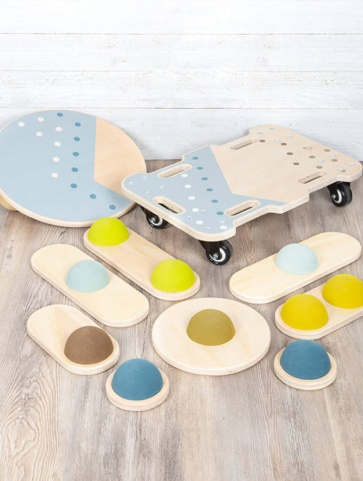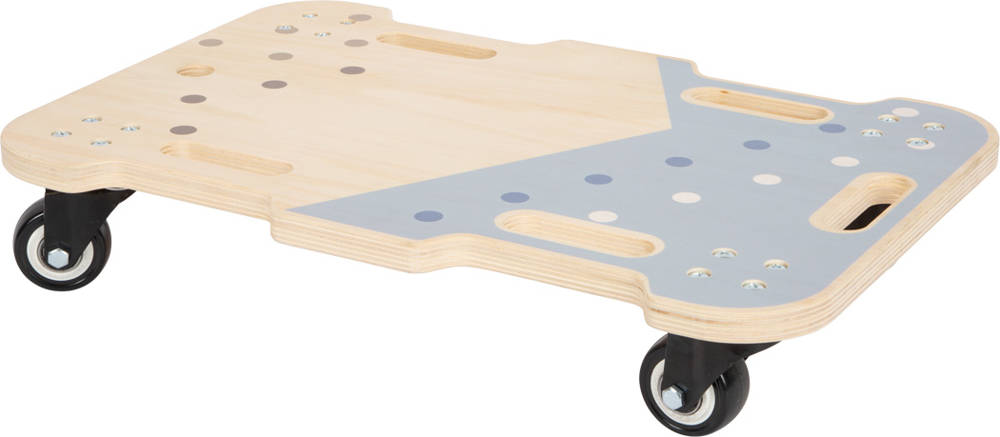 Drewniana deskorolka Small Foot zapewni mnóstwo frajdy i różnorodne pomysły na zabawę. Niezależnie od tego, czy siedzisz, klęczysz, czy leżysz – wytrzymała, odporna na przechylanie deskorolka sprawia, że każdy rodzaj zabawy jest zabawą, a od czasu do czasu ćwiczy siłę fizyczną i równowagę. Skrętne kołka, które można szybko i łatwo obracać również w poziomie, pozwalają na szybką zmianę kierunku. Boczne wgłębienia na uchwytach zapewniają dodatkowe bezpieczeństwo. Gumowe opony zapewniają cichą, chroniącą podłogę jazdę. Otwory i uchwyty dają również możliwość zamocowania liny i przeciągnięcia deski na kółkach. Drewniany pojazd może być używany samodzielnie lub twórczo jako część całego kursu z innymi zabawkami do ćwiczeń z linii „Adventure”. Prosty design i kształty oraz duża ilość naturalnego drewna z łatwością wkomponują się w każdy pokój dzienny lub pokój dziecięcy. Nadaje się również do celów terapeutycznych.