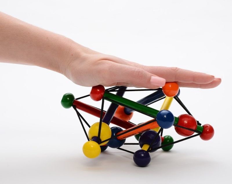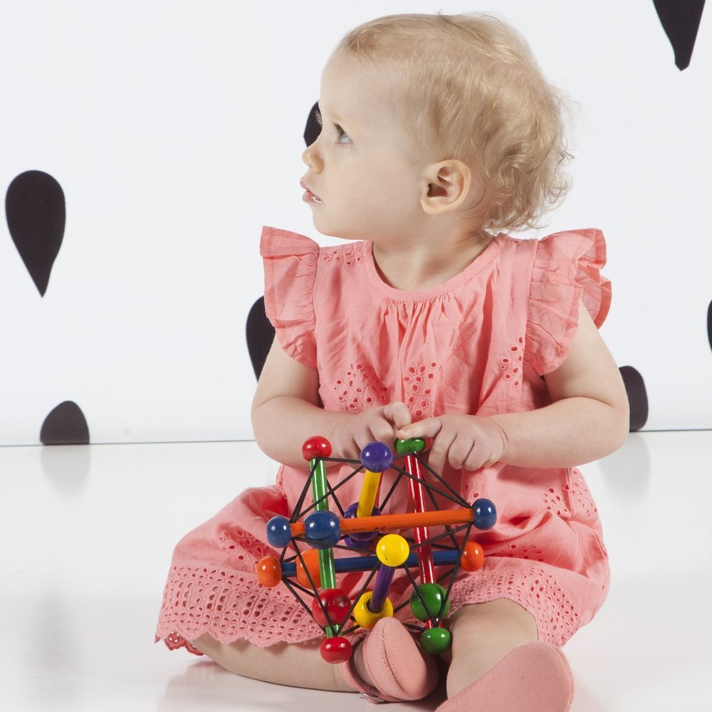Ta zabawka dla najmłodszych z koralami na linkach zawsze wraca do swojej wyjściowej formy. Korale wykonane są z drewna kauczukowego, pokryte bezpiecznymi dla dziecka farbami na bazie wody.
