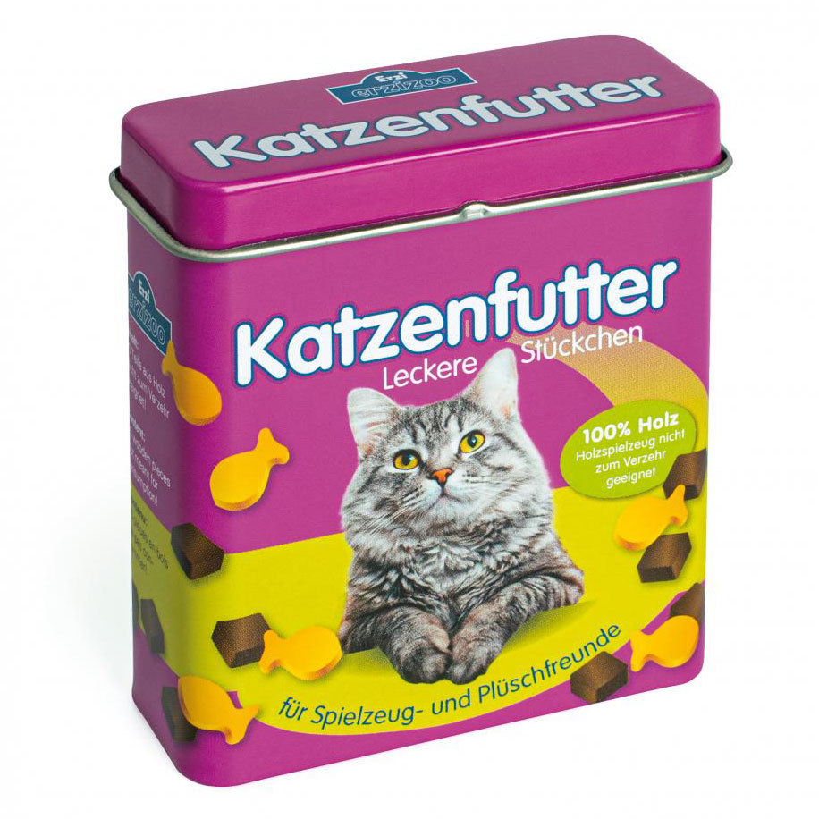 Wykonana z drewna buku kocia karma marki Erzi sprawi, że zabawa w opiekę nad pluszowym zwierzakiem będzie bardziej realistyczna. W kolorowej puszce znajduje się 25 kawałków kociej karmy w różnych kształtach i kolorach. Drewniana karma dla kota to także doskonały produkt do zabawy w sklep. Zabawka została wyprodukowana w Niemczech oraz posiada certyfikaty bezpieczeństwa CE oraz ASTM.