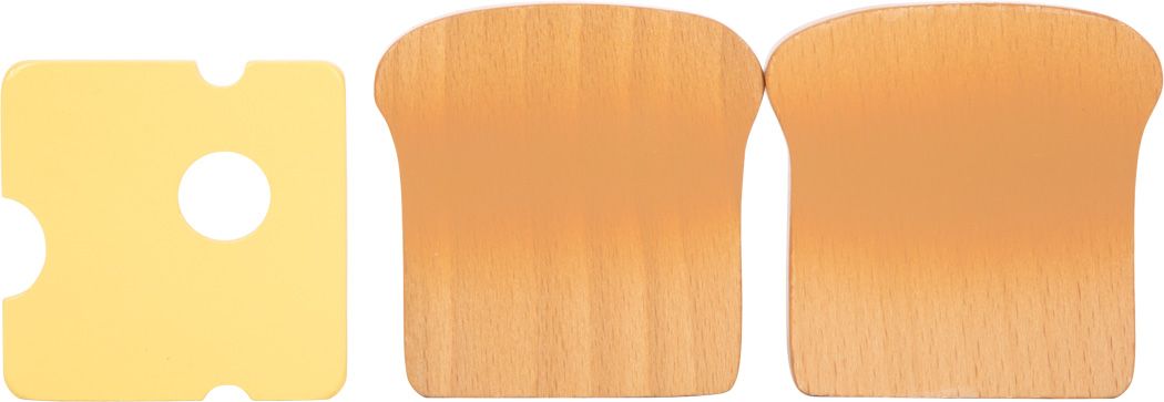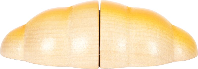 Wszystkie akcesoria spożywcze wykonano ze starannością, z mocnego drewna o zaokrąglonych brzegach. Rogalik i pomarańcza mogą być wielokrotnie „krojone”.