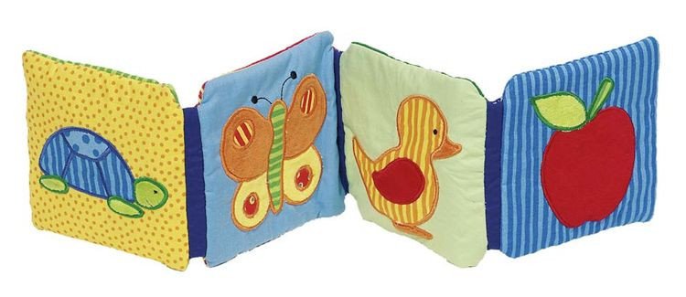 Miękka zabawka, książeczka z dźwiękowymi atrakcjami posiada piszczałkę, szeleszczące elementy, grzechotkę itp.