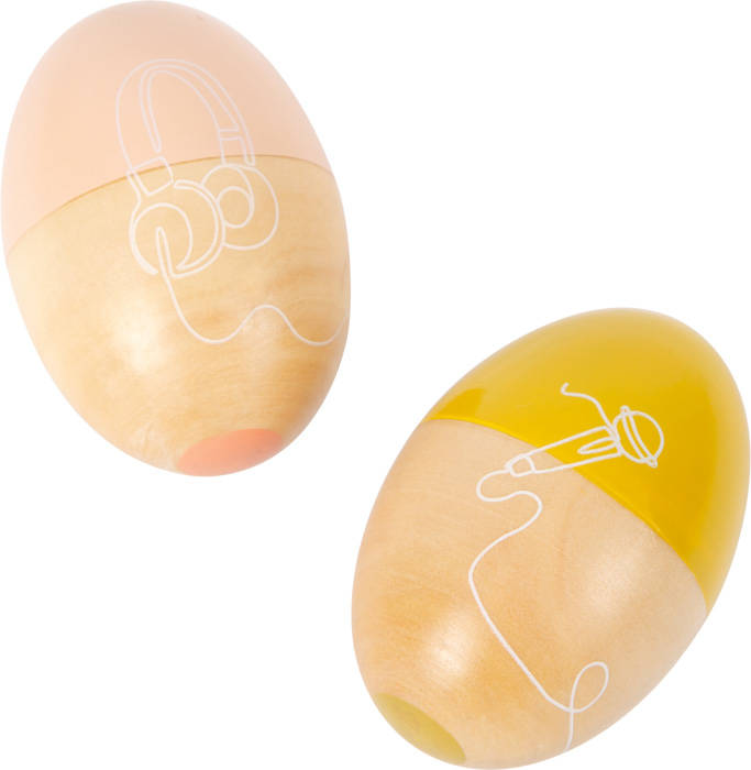 Potrząsaj, grzechotaj, tocz i twórz muzykę! Te muzyczne grzechotki ,,Groovy Beats” Small Foot w kształcie jajek tworzą dźwięki miłe dla naszych uszu. Każda z pięciu grzechotek wykonanych z mocnego, litego drewna wydaje inny dźwięk i oferuje wszelkiego rodzaju rytmiczną zabawę. Jajka mają piękny kształt i można je łatwo chwycić w dłonie, a dzięki połączeniu naturalnego drewna i nowoczesnych, kontrastujących kolorów,  muzyczne jajka przyciągają wzrok wszystkich miłośników muzyki.