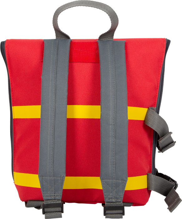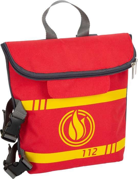 Dzięki realistycznemu plecakowi w ostrzegawczych kolorach i regulowanymi paskami mali strażacy zawsze szybko dotrą na miejsce zdarzenia by udzielić odpowiedniej pomocy. Podwójny zamek pozwala na szerokie rozpięcie plecaka, a gumowe otwory w plecaku zapewniają niezbędny porządek oraz szybki dostęp do ekwipunku wykonanego z wytrzymałego drewna. Dodatkowe paski zatrzaskowe na plecaku służą do mocowania akcesoriów. Praktyczny plecak strażacki z pełnym wyposażeniem umożliwi dzieciom odgrywanie ekscytującej akcji strażackiej.
