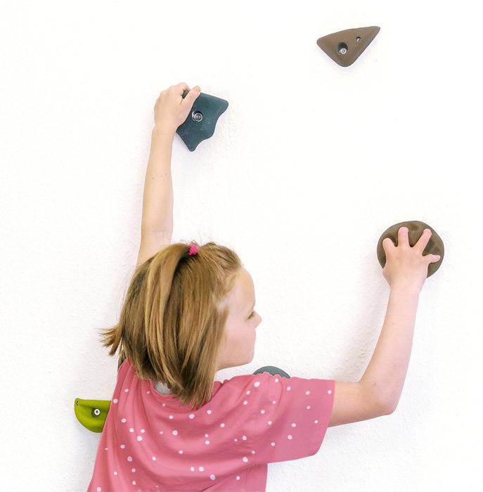 Zestaw dla małych pasjonatów wspinaczki! Dzięki 10 wytrzymałym uchwytom wspinaczkowym o różnych kształtach możesz stworzyć na ścianie wyjątkowe stopnie wspinaczkowe. Kamienie wspinaczkowe zabezpieczone są przed nagłym przekręceniem dzięki dwupunktowemu systemowi mocowania. Świetnie komponują się z wewnętrzną ścianą wspinaczkową „Adventure”. Skałki do wspinaczki są łatwe do chwycenia przez dzieci dzięki rozmiarowi i strukturalnej powierzchni. Wspinaczka promuje rozwój siły, równowagi, odwagi oraz wytrzymałości.