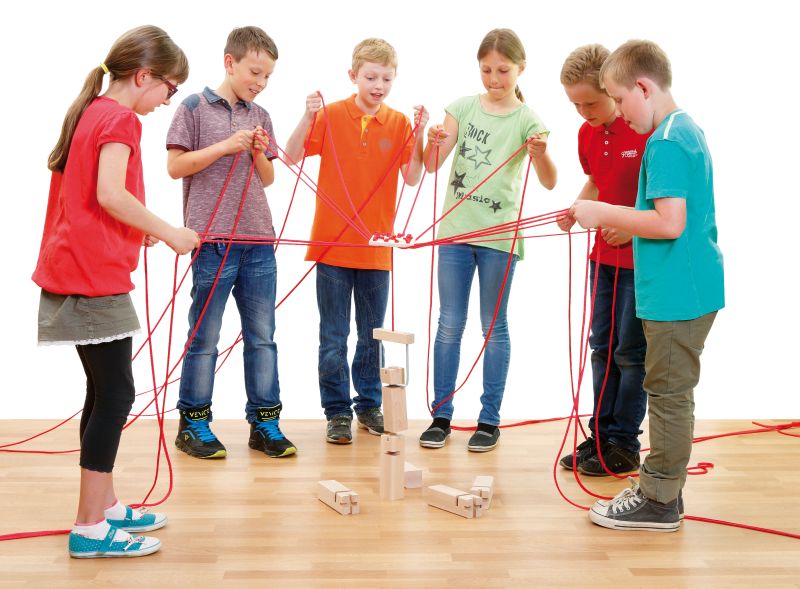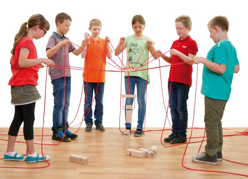 Wieża Froebla to ekscytująca gra zespołowa wykonana z drewna, metalu i tkaniny, przeznaczona dla 2 do 12 graczy! Celem tej gry zespołowej jest zbudowanie wieży z sześciu drewnianych klocków. W tym celu każdy z graczy trzyma w ręku co najmniej jeden sznurek i próbuje wraz z innymi graczami skoordynować metalowy hak. Wieża Froebla dostarczana jest w praktycznej bawełnianej torbie. Wspaniała zabawa dla młodszych i starszych.