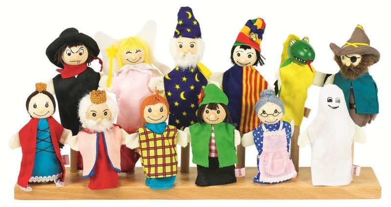 Zestaw 12 pacynek na palec z drewnianymi głowami.