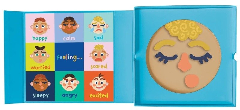 Maluchy będą się dobrze bawiły tworząc miny na twarzach za pomocą zestawu magnetycznego z Manhattan Toy. Komplet zawiera 3 tablice magnetyczne do tworzenia twarzy, do których można dopasować wybrane elementy z pośród 31 wykrojonych magnesów. Dzieci mogą utworzyć jedno z 8 sugerowanych uczuć lub stworzyć własną twarz.