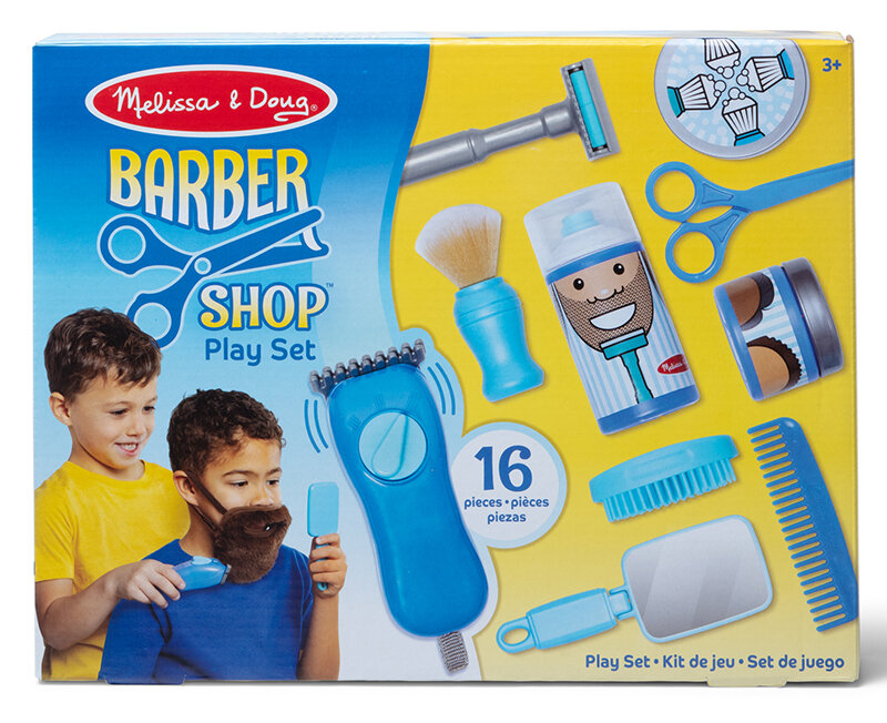 Zestaw małego fryzjera Melissa and Doug to składająca się z 15 elementów zabawka, pozwalająca na wcielenie się w rolę fryzjera, barbera lub klienta tychże salonów. Zestaw składa się m.in. z maszynki, nożyczek, grzebienia czy tez pianki, a te i pozostałe akcesoria mieszczą się w jednej torbie dołączonej do zestawu. Zabawka przeznaczona jest zarówno dla chłopca jak i dziewczynki w zakresie wiekowym 3-6 lat.