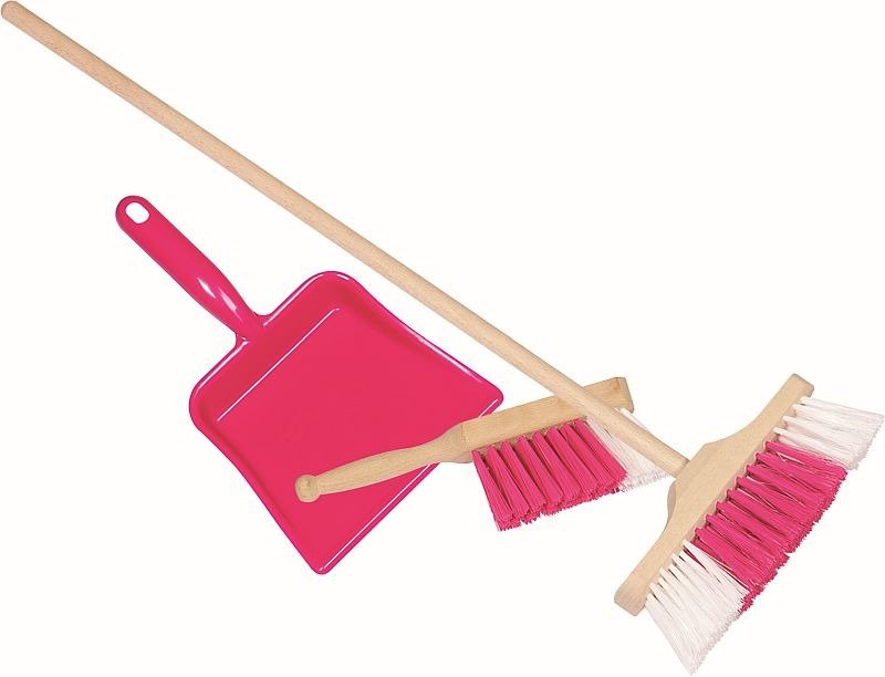 Zestaw różowy – miotła, szufelka i zmiotka dla dzieci.